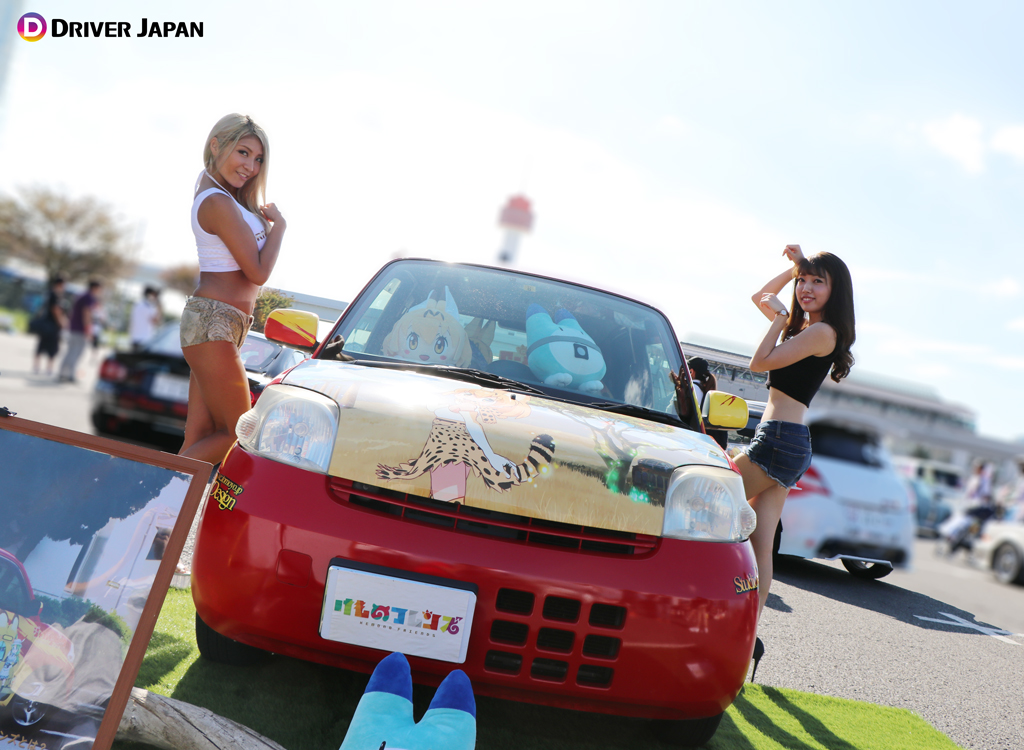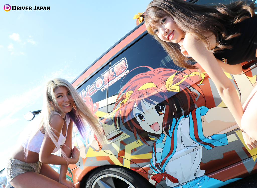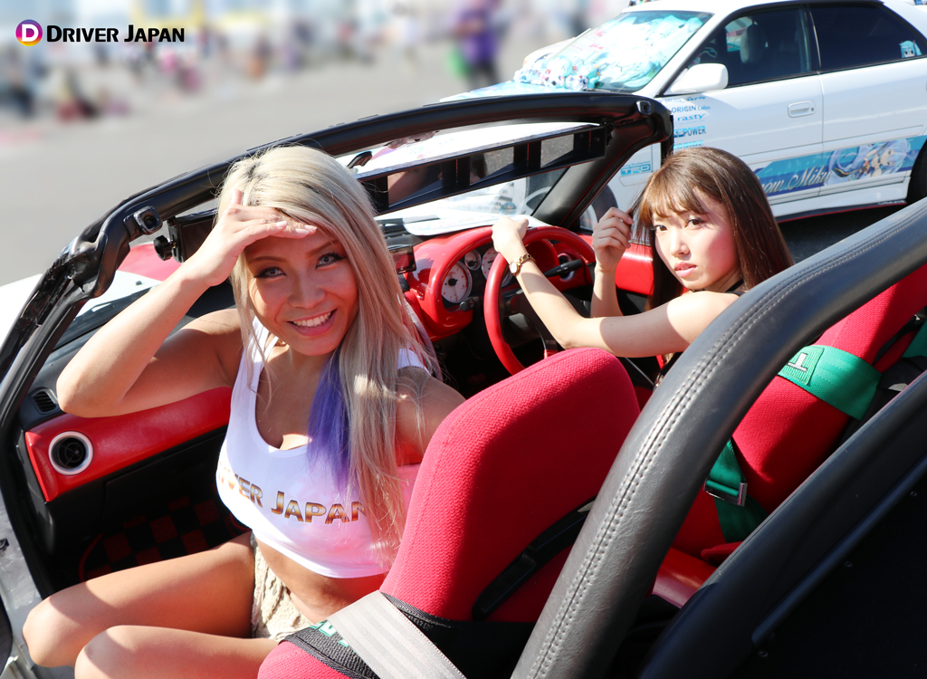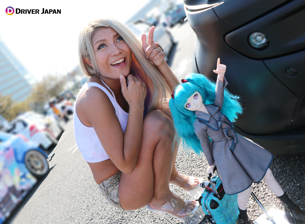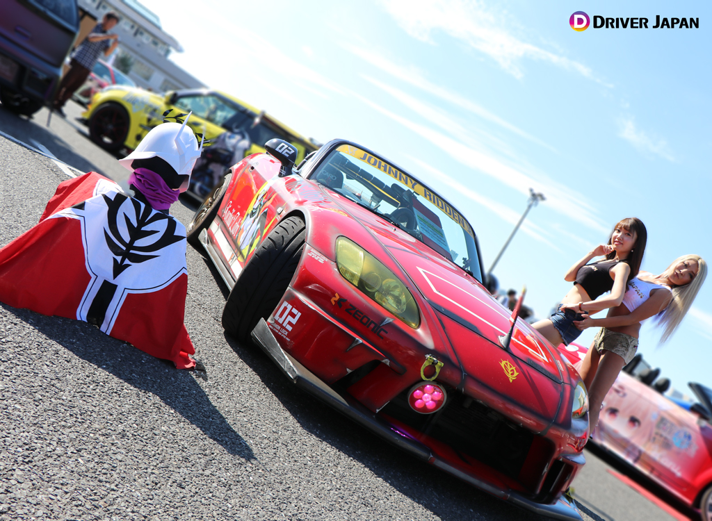 痛車天国でコスプレイヤーのお姉さんと記念撮影するDRIVER JAPAN GIRLS痛車天国の展示車両痛車天国の風景