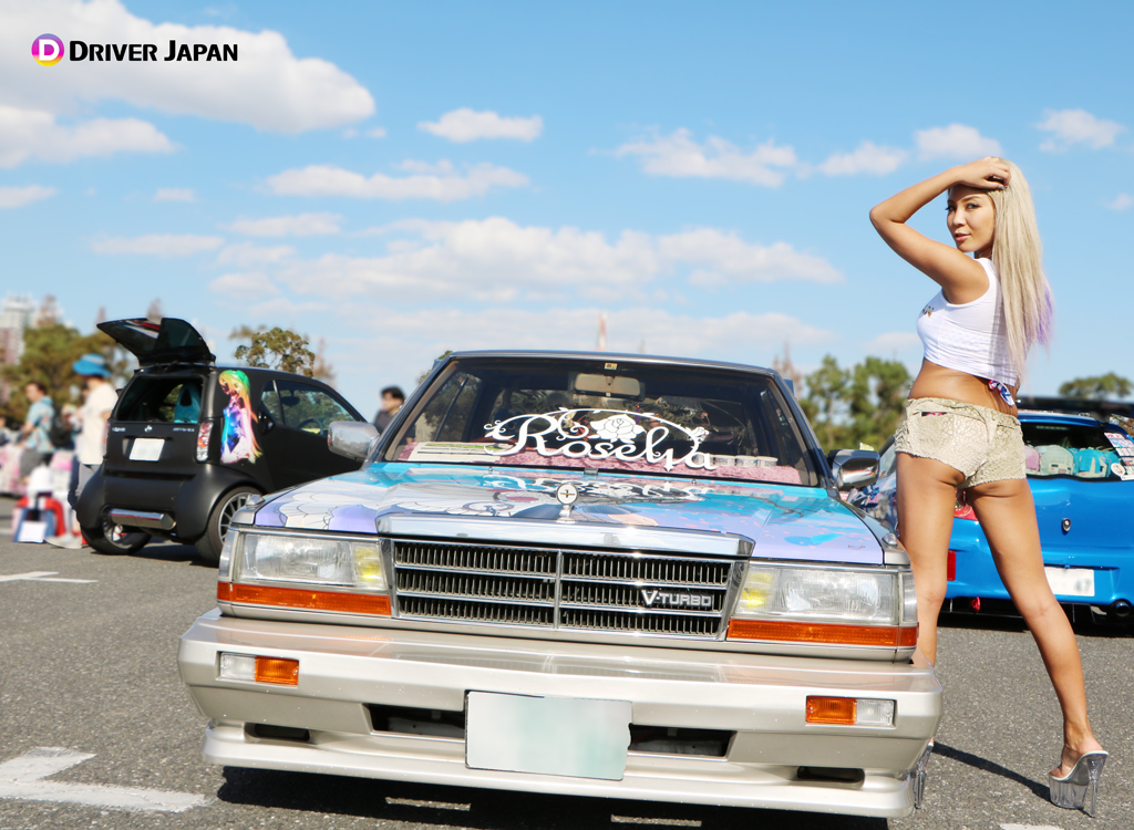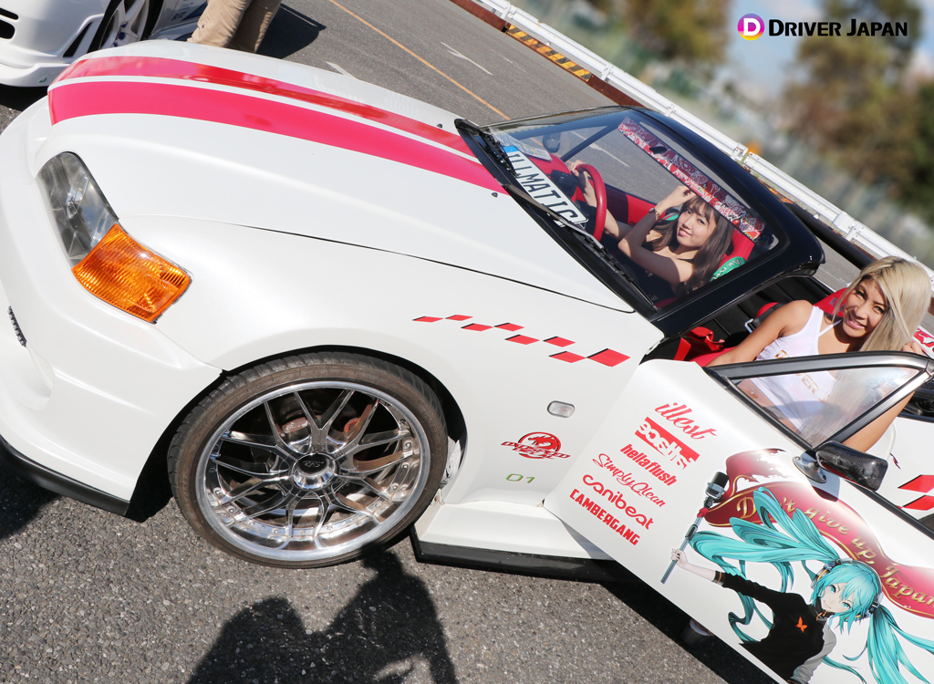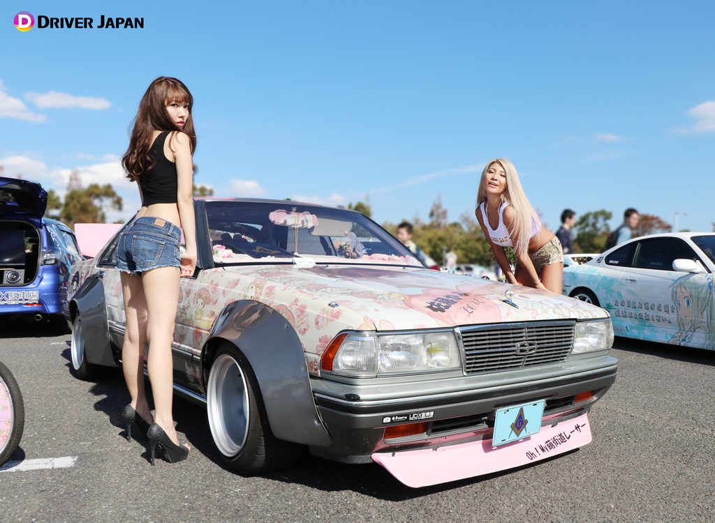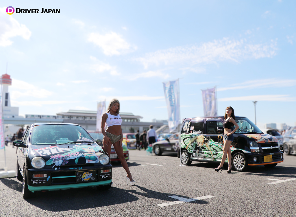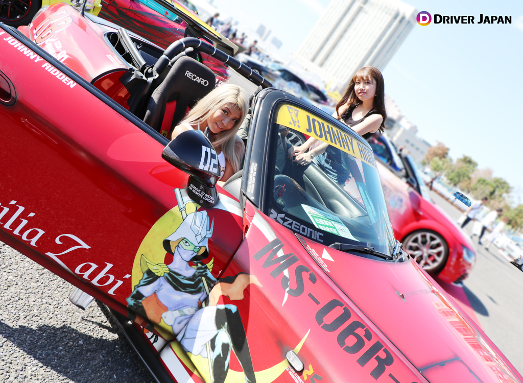 痛車天国でコスプレイヤーのお姉さんと記念撮影するDRIVER JAPAN GIRLS痛車天国の展示車両痛車天国の風景